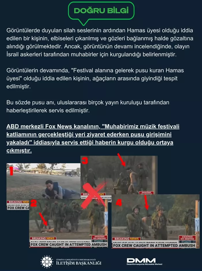 DMM, ABD merkezli Fox News kanalının, "Muhabirimiz müzik festivali katliamının gerçekleştiği yeri ziyaret ederken pusu girişimini yakaladı" iddiasıyla servis ettiği haberin kurgu olduğunu belirtti.