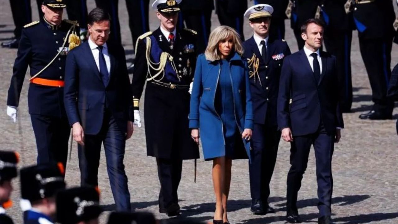Kral Willem-Alexander, Macron ve eşinin bulunduğu makam aracını, Amsterdam Kraliyet Sarayı önündeki tören alanının girişinde karşıladıktan sonra, tören yerindeki muhafız alayı ve tören kıtasını beraber selamladı.