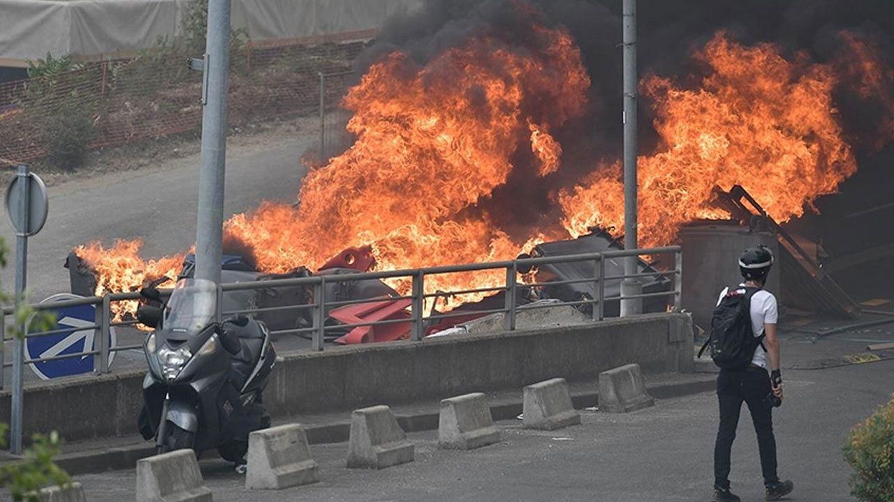 Olaylara müdahale etmek için yaklaşık 50 belediye polisi görevlendirilirken, yüzü maskeli gençler polise kaldırım taşları ve bir molotofkokteyli fırlattı.