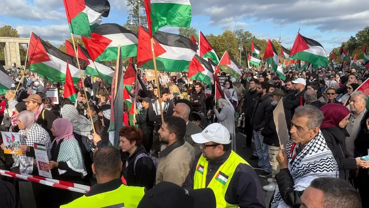 İsrail ile Hamas arasında Gazze’de ateşkese varılmasından sonra Almanya'nın başkenti Berlin’de binlerce kişi Filistin’e destek için buluştu. Berlin’deki tarihi Brandenburg Kapısı önünde bir araya gelen göstericiler Filistin bayrakları ve pankartlar taşıdı, Gazze'ye destek sloganları attı.