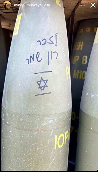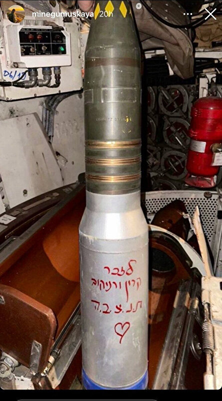 Kullanıcının diğer fotoğraflı paylaşımlarında bombaların üzerine kalpler ve İbranice yazılar dikkat çekti.