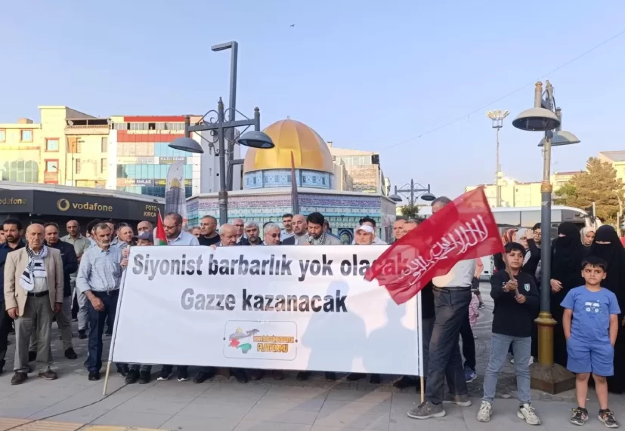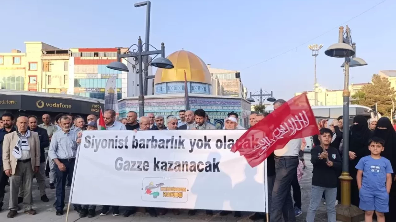 Filistin'e Destek Platformu tarafından düzenlenen basın açıklaması için vatandaşlar, Beşyol Meydanı'nda bir araya geldi.