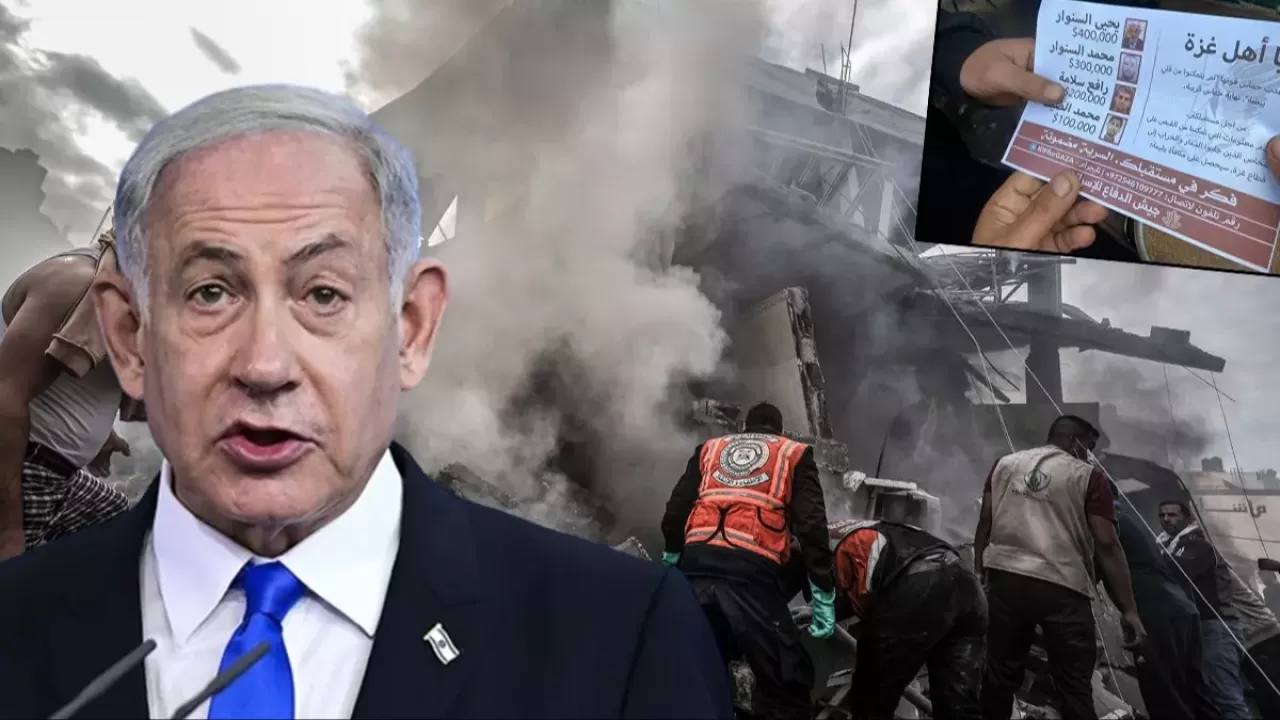 67 gündür bombaladığı Gazze halkından yardım isteyen İsrail söz konusu broşürlerde, Hamas'ın üst düzey yetkililerinden Yahya Sinvar, kardeşi Muhammed Sinvar, Han Yunus Komutanı Rafa Salameh ve Muhammed Deif için para ödülü teklif etti.