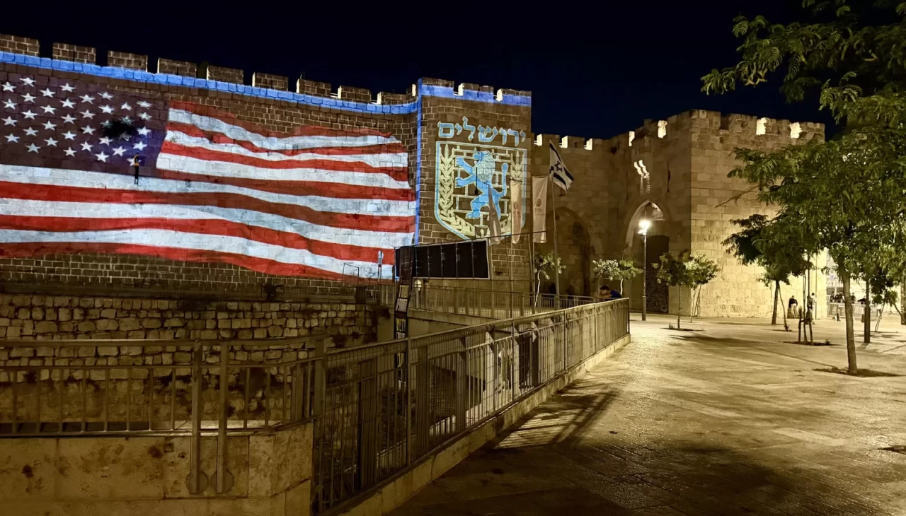 Güç kaybı yaşayan İsrail'den müttefiki ABD'ye jest! Kudüs surlarına ABD ve İsrail bayraklarını yansıttı