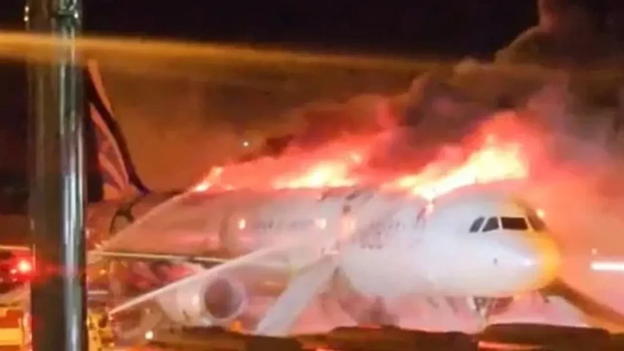 İtfaiye yetkilileri, yangın nedeniyle uçakta bulunan 169 yolcu ve 7 personelin, şişme kaydırakla tahliye edildiğini bildirdi.