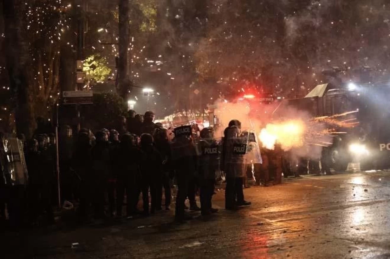 Gürcistan hükümetinin, ülkenin AB'ye katılım müzakerelerini 28 Kasım'da askıya alma kararına karşı başlayan gösteriler dün akşam dördüncü gecesinde de devam etti.