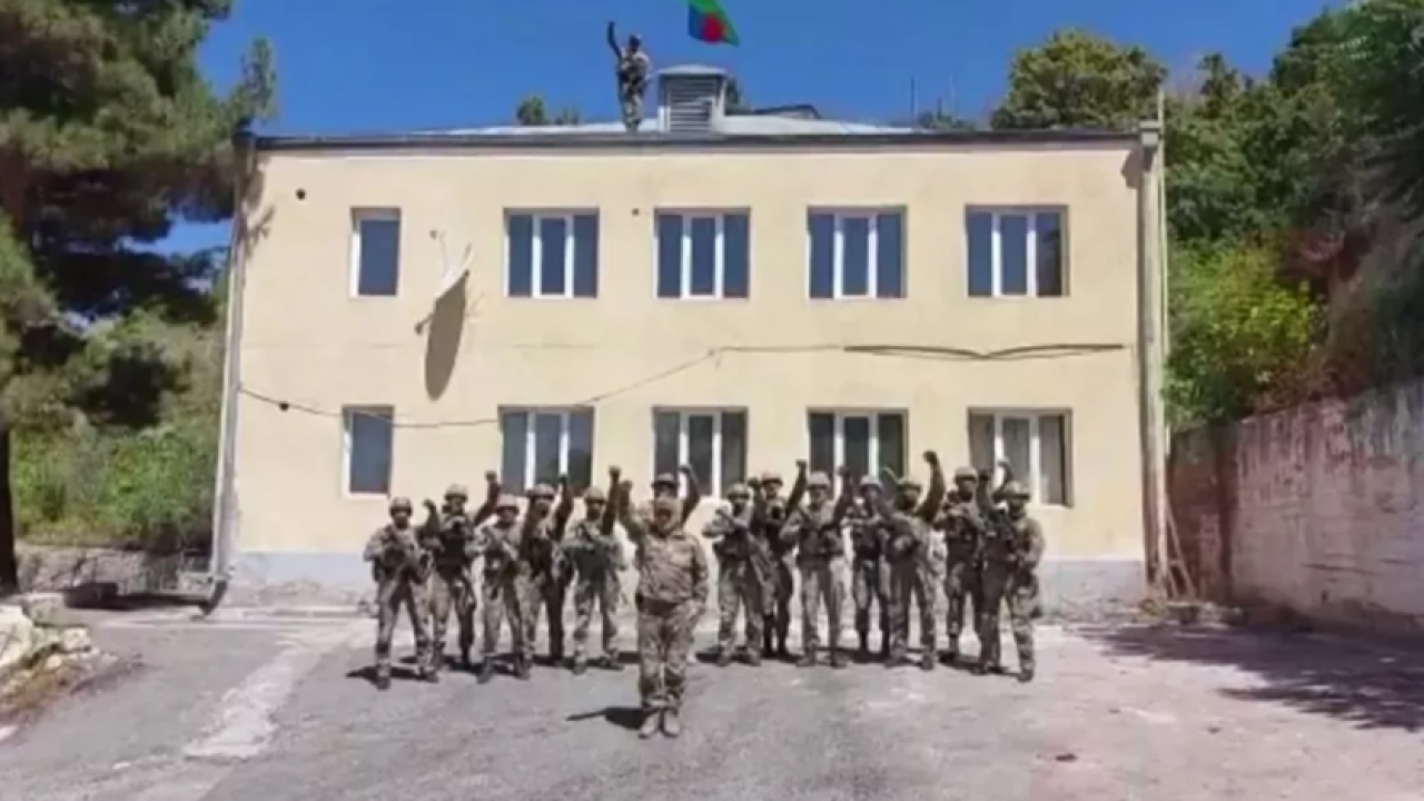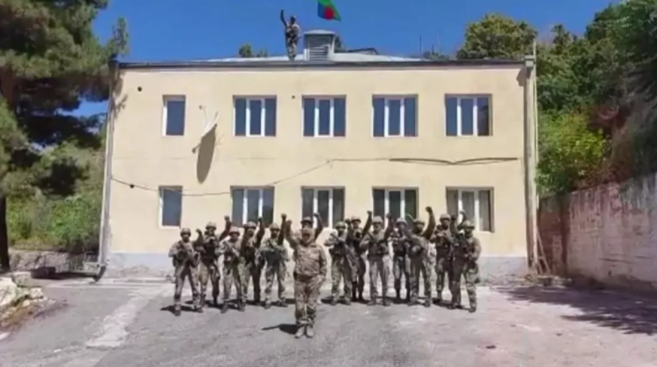 Azerbaycan ordusu, tam kontrol sağladığı Laçın şehrinin merkezine bayrak dikti.