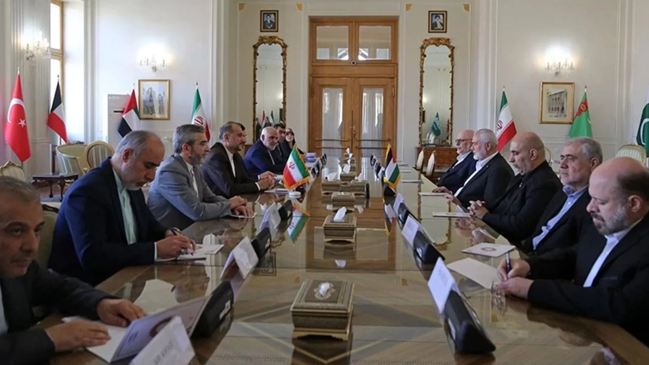 Görüşmenin yerine ilişkin bir bilgi verilmezken, açıklamada, "İki heyet halkımızın fedakarlıklarını, soykırım ve açlık savaşından kaynaklanan insani acıları ve Siyonist düşmanın halkımıza ve geleceğine yönelik kötü niyetli, tehlikeli planlarını hayata geçirmek amacıyla gerçekleştirdiği günlük katliamları ele aldı." ifadeleri kullanıldı.