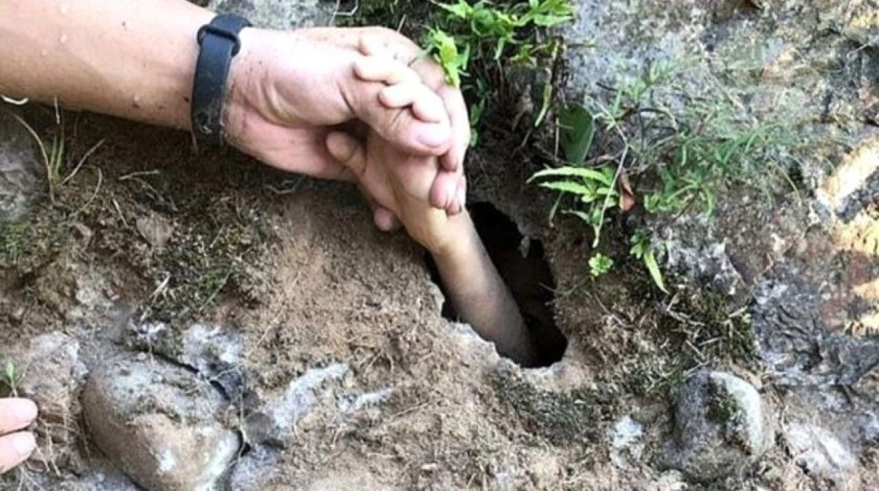 Büyükbabası tarafından nehre yüzmeye götürülen küçük çocuk, bir anda suyun yüzeyinden kayboldu. Çaresizce torununu arayan adam ve çevredekiler, nehir yakınında toprakta bulunan küçük bir delikten çocuğun elinin çıktığını gördü.