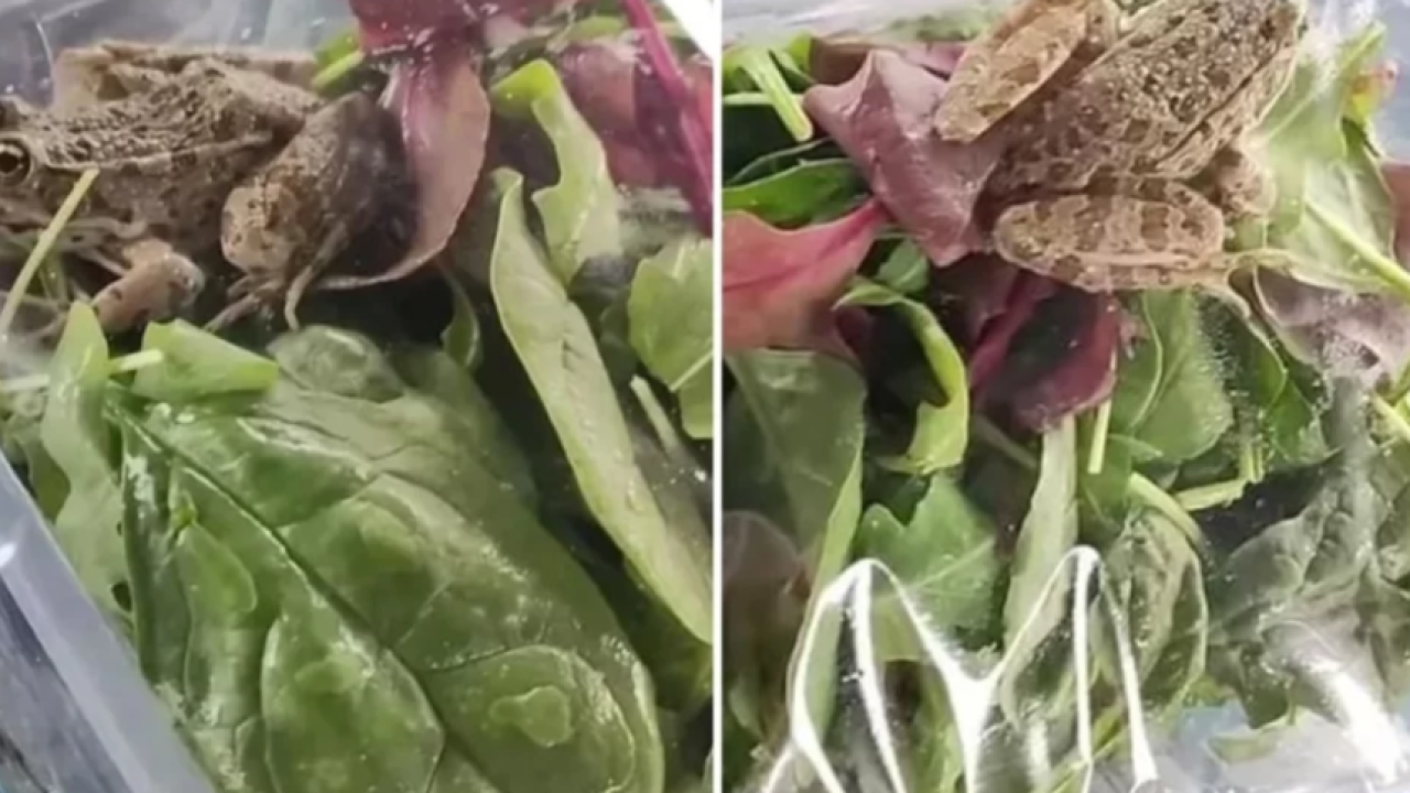 Polonya'da marketten paketli yeşillik salatası alan bir kadın, salata paketinin içinde canlı kurbağa buldu.