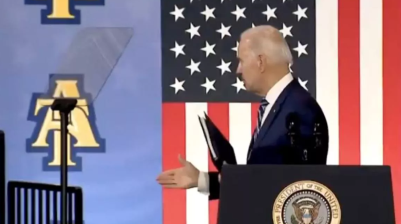 Biden bu sefer konuşma yaptığı bir üniversitedeki garip hareketleri ile sosyal medyanın dilinde.