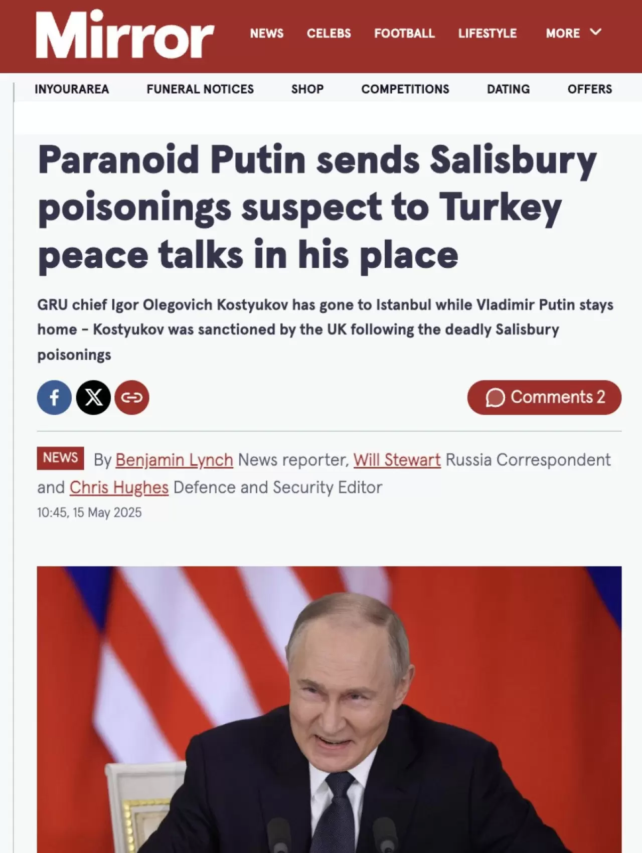 İngiliz The Mirror gazetesi, Putin’in Kremlin dışına nadiren çıktığını, yakın çevresine ve Kremlin karşıtı kontrolcülere güvenmediğini ve artan tehdit algısıyla güvenlik önlemlerini maksimuma çıkardığını yazdı.