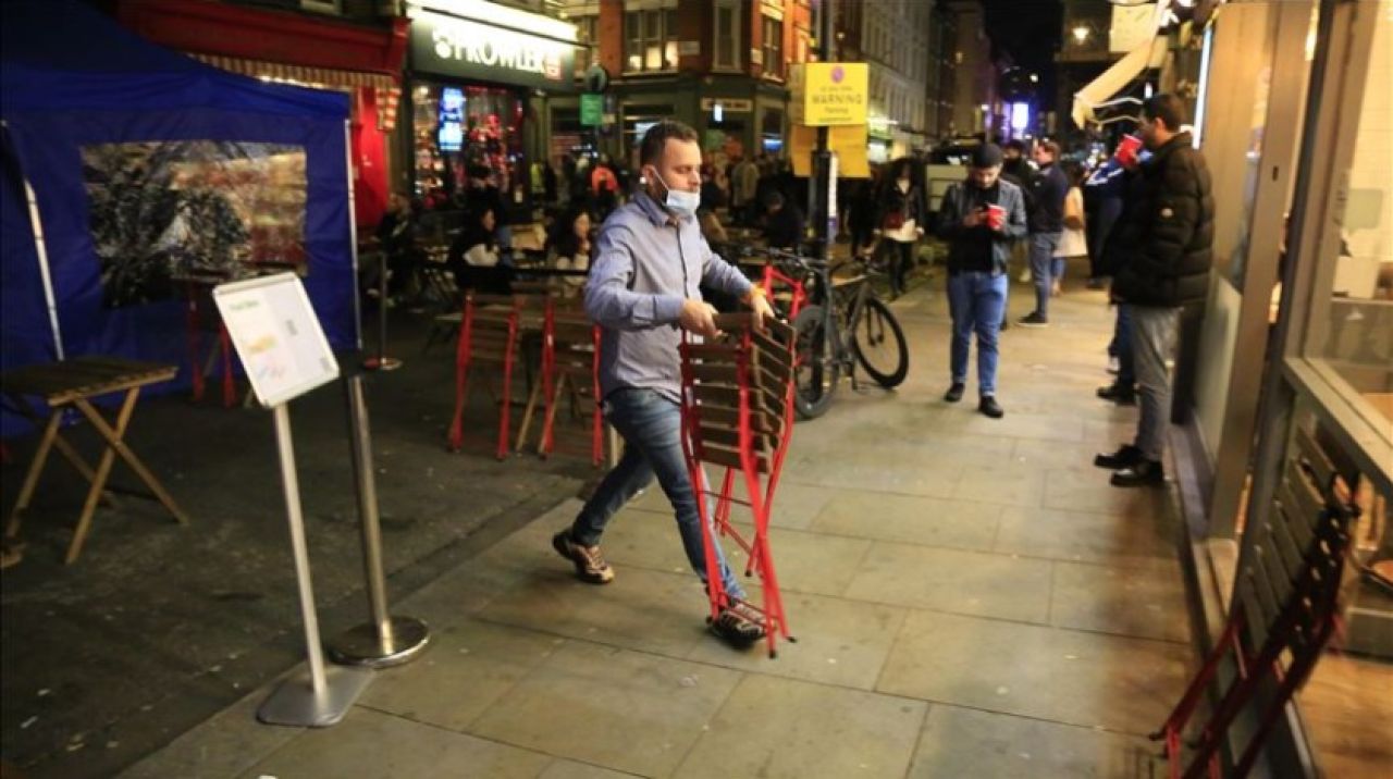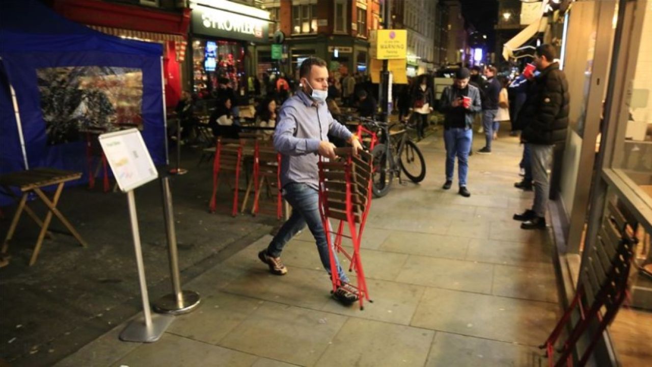 Barların kapatılmasının ardından gençler, başkent Londra'nın eğlence mekanı Soho'da sokaklarda eğlenmeye devam etti.
