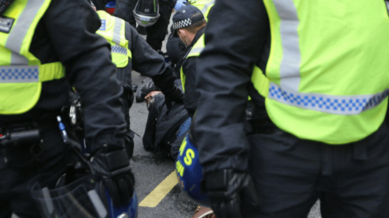 Eylemcileri dağılmaları için uyaran polis, uyarıları dikkate almayan bazı göstericileri gözaltına aldı. Polis, topluluğun önünde yürüyen İşçi Partisi eski lideri Jeremy Corbyn'in kardeşi Piers Corbyn'e de müdahalede bulundu.