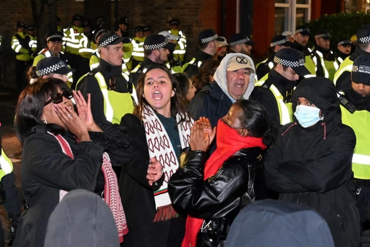 Haringey'deki dernek önünde bir araya gelen örgüt destekçileri ile bu noktada barikat kurmak isteyen polis arasında arbede çıktı, dört kişi gözaltına alındı.