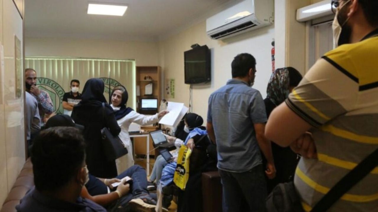 Tahran'daki Keyvan Viroloji Laboratuvarında, son günlerde Covid-19 testi yaptırmak isteyenlerin sayısındaki artış nedeniyle yoğunluk yaşanıyor.
