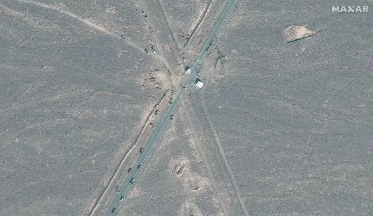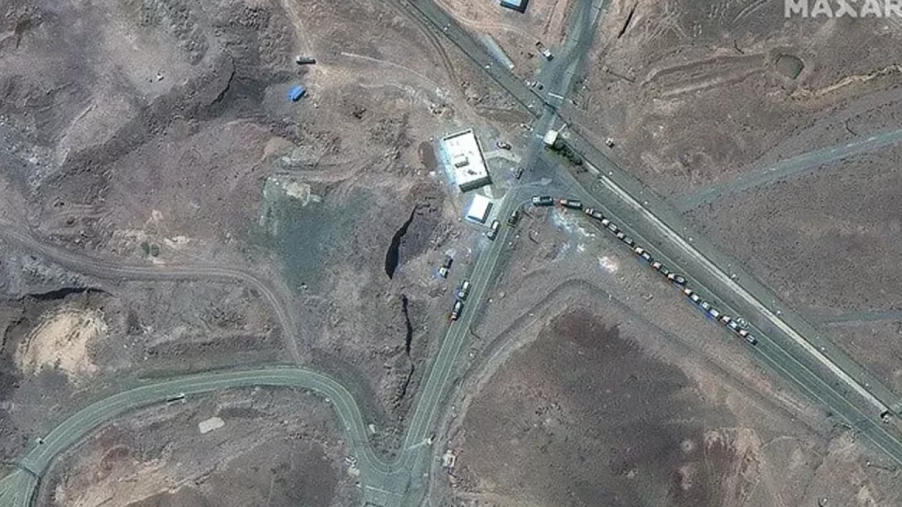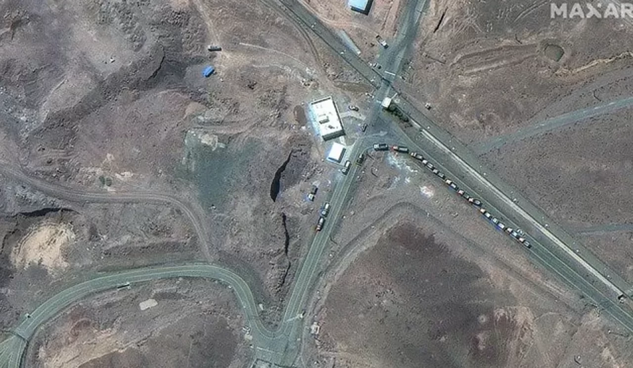Perşembe günü, İran'ın yeraltı askeri kompleksine giden erişim yolu boyunca 16 kargo kamyonu vardı.