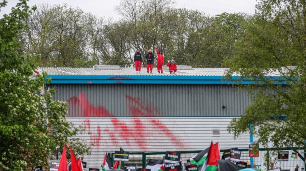 İngiltere merkezli Palestine Action adlı bir eylem grubu üyelerinin 19 Mayıs'ta Leicester'da Elbit-Thale Systems binasında başlattıkları eylemleri devam ediyor.