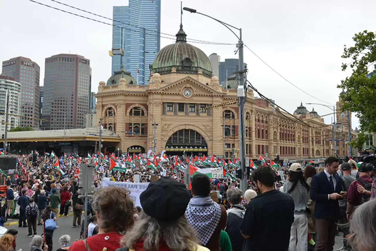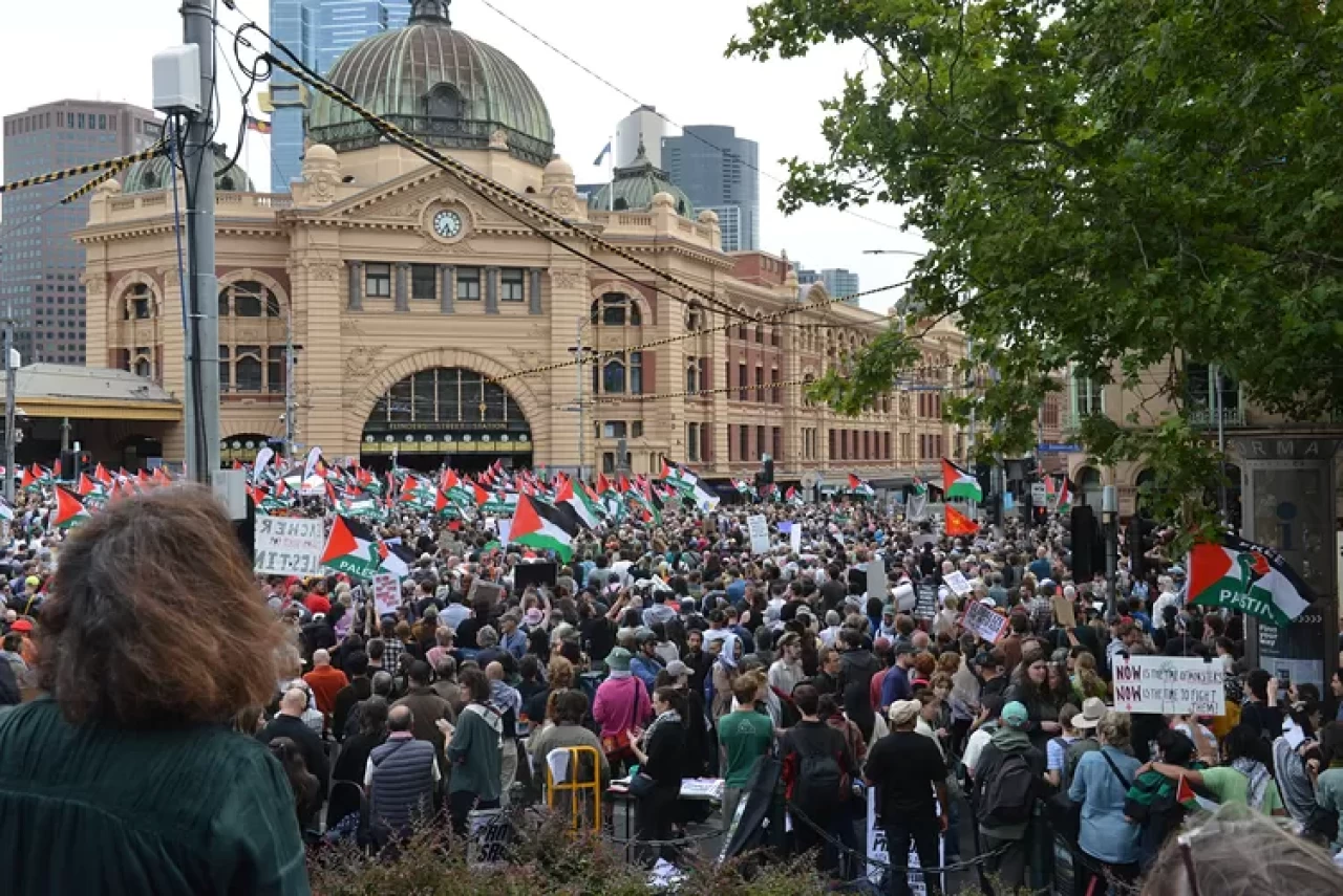 ABC News’ün aktardığına göre, Melbourne kent merkezindeki Flinders Caddesi İstasyonu önünde yerel saatle 17.00’de çok sayıda gösterici toplandı. Filistin destekçisi gruplar yürüyüş düzenleyerek Herzog’un ziyaretine tepki gösterdi.