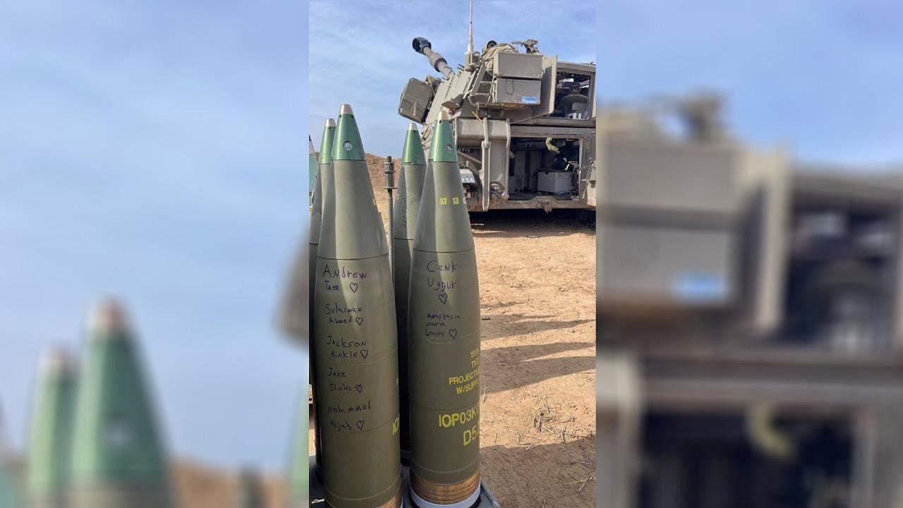 Sosyal medyada paylaşılan fotoğraflarda, daha önce de çocuklara bombaların üzerine yazılar yazdıran İsrail ordusunun bu kez ABD'nin gönderdiği bombaların üzerine Filistin'i destekleyen tanınmış kişilerin isimlerinin yazılmasına izin verdiği görüldü.