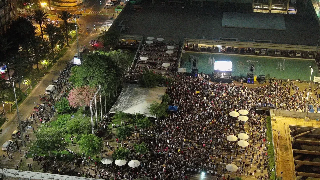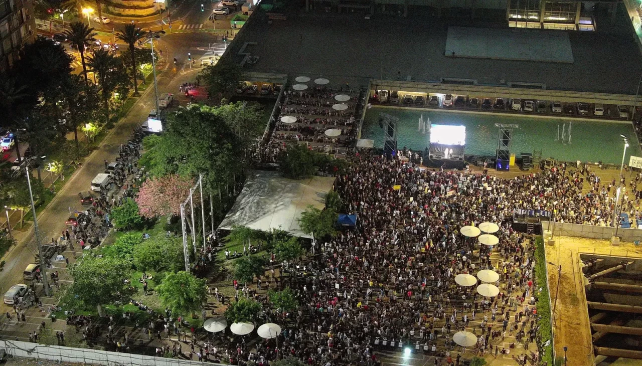 Tel Aviv’de toplanan yüzlerce İsrailli, Gazze’deki çatışmaların sona erdirilmesi ve esir İsraillilerin geri getirilmesi için güçlü bir protesto gerçekleştirdi.
