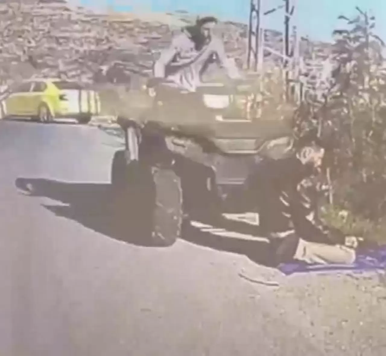 Sosyal medyaya yansıyan görüntülerde, Filistinlilerin topraklarını gasbeden bir İsraillinin, yol kenarında namaz kılan bir Filistinlinin üzerine ATV sürdüğü ve ezdiği anlar yer aldı. Görüntülerde saldırganın bağırdığı ve otomatik silah taşıdığı da görüldü.