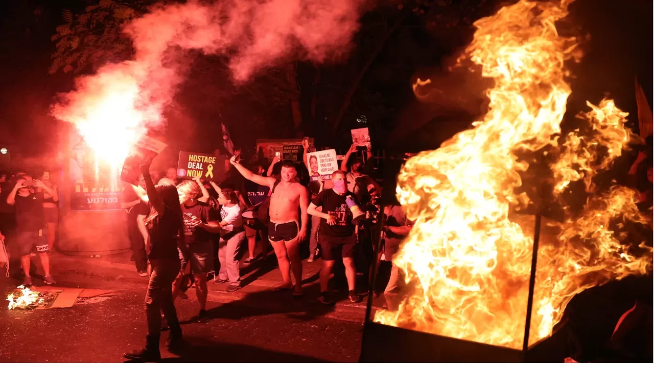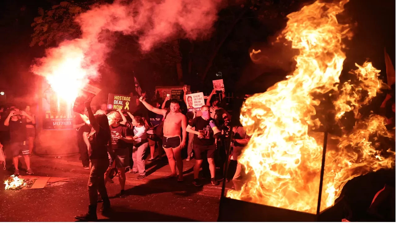 İsrail’de hükümet karşıtı gösteriler şiddetleniyor. Başbakan Binyamin Netanyahu ve hükümetini istemeyen binlerce İsrailli, başkent Tel Aviv’de Kirya Askeri Üssü ve Netanyahu’nun lideri olduğu Likud Partisi genel merkezinin önünde toplandı. Netanyahu’ya tepki gösteren İsrailliler esir anlaşmasının imzalanmasını talep ederken, erken seçim çağrısı yaptı. İsrail başbakanının Gazze Şeridi’nde sürdürdüğü politikayı protesto eden göstericiler caddeleri ateşe verdi. Seçim çağrısı yapan İsraillilere müdahale eden polis hükümet karşıtı slogan atan çok sayıda kişiyi gözaltına aldı.