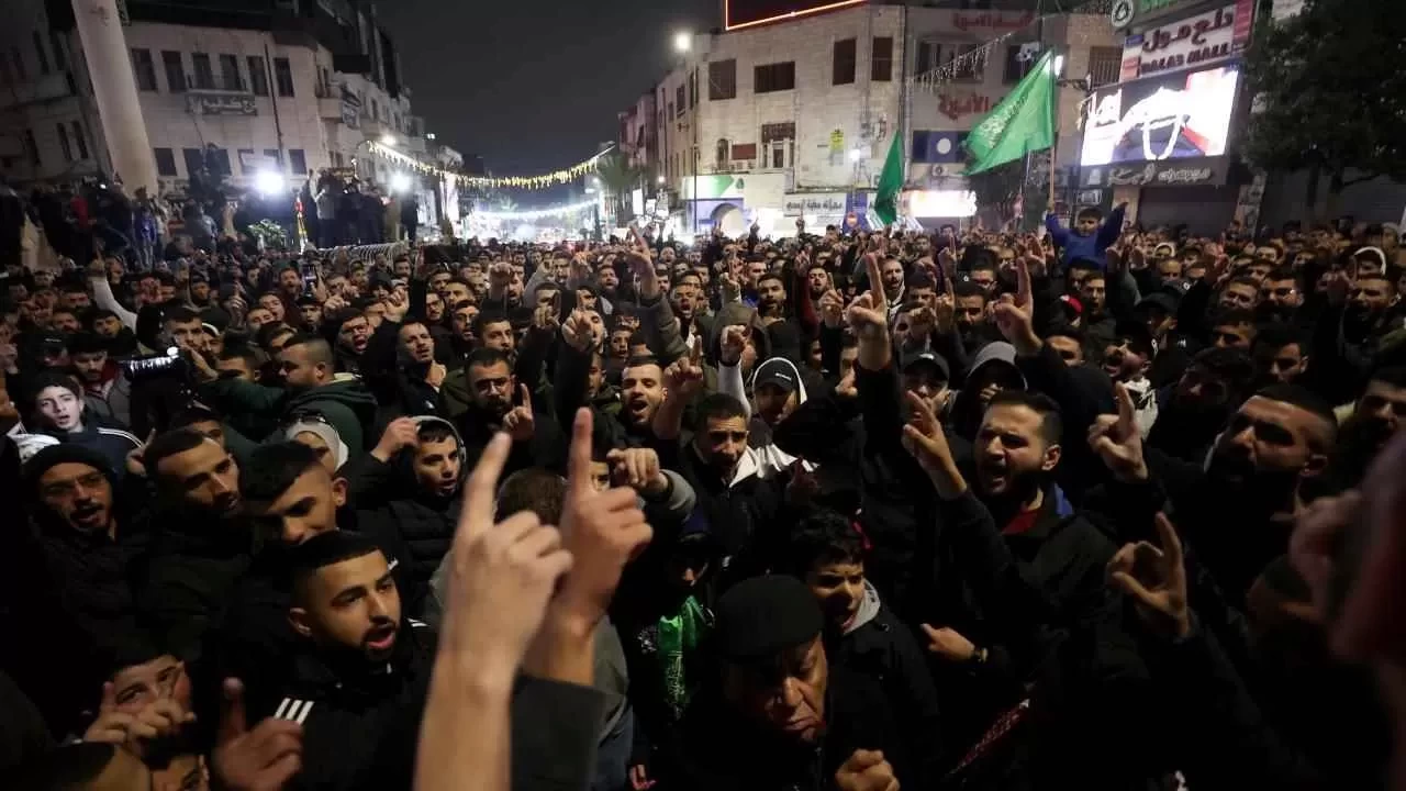 Kentteki ulusal ve İslamcı gruplardan oluşan göstericiler, ellerinde Filistin bayraklarıyla Ramallah sokaklarında yürüyüş düzenledi.
