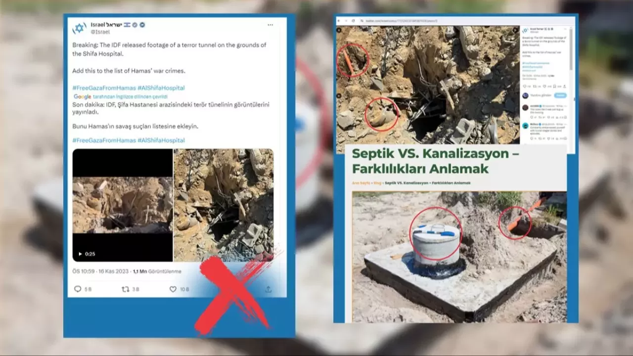 İsrail'in paylaştığı görüntülerin Hamas tüneli değil, foseptik çukuru olduğu belirtilen açıklamada, "İsrail'in resmi hesaplarından paylaşılan görüntülerle ilgili, "İsrail ordusunun Şifa Hastanesi arazisinde bulduğu Hamas tüneli" iddiası doğru değildir. İddiaya konu görüntüler incelendiğinde, tahrip edilen çukurun girişinde boruların ve bir beton kapağın olduğu belirlenmiştir." denildi.