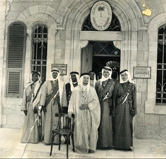 Suudi Arabistan'ın Filistin'e atadığı ilk Büyükelçi Nayif bin Bender Sudeyri, eski adı Twitter olan X sosyal medya platformundan yaptığı açıklamada, eski Kral Abdulaziz bin Abdurrahman'ın talimatıyla 1947 yılında Doğu Kudüs'ün Şeyh Cerrah Mahallesi'nde Başkonsolosluğun açıldığını hatırlatarak o güne ait bir fotoğraf paylaştı.