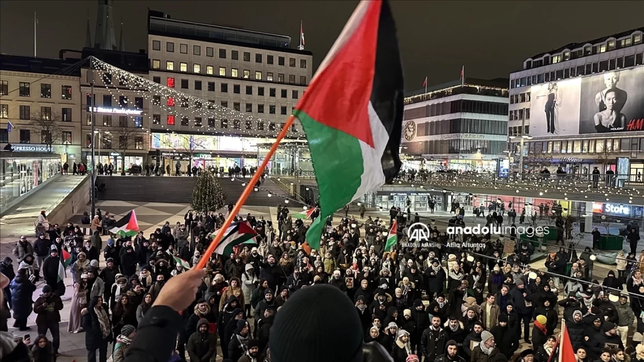 Stockholm'ün Odenplan bölgesinde bir araya gelen yüzlerce kişi, İsrail'in Gazze ve Batı Şeria'da ateşkesi sabote girişimlerinin önüne geçilmesini istedi.