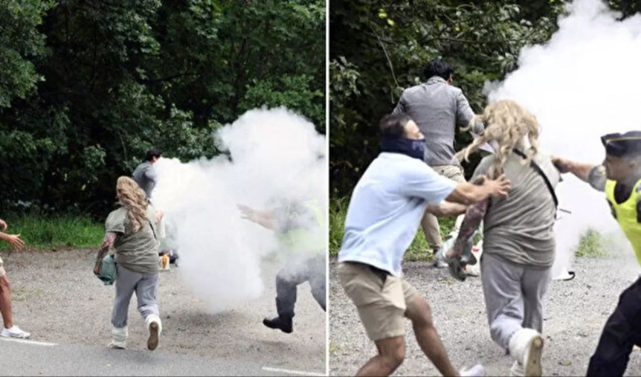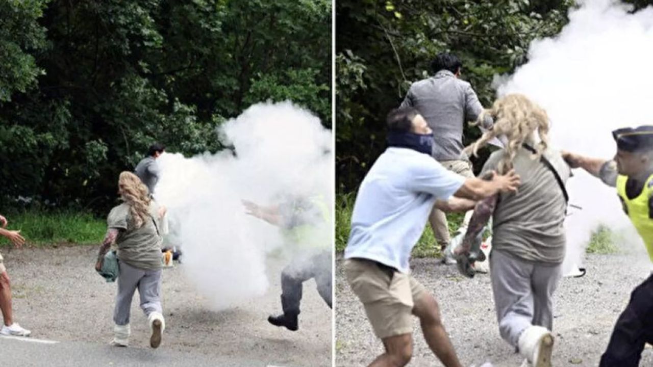 Göstericilerin arasında bulunan bir kadın ise Momika'nın yaktığı Kur'an-ı Kerim'e, yangın söndürücü tüple müdahale etti. Ortalığı sis kaplarken polis, kadını etkisiz hale getirerek gözaltına aldı. Eylem sonrası olay yerinden zırhlı polis aracıyla ayrılan Momika ve Najem'e, 10'u zırhlı olmak üzere 20 polis aracı ve yaklaşık 100 polis eşlik etti.