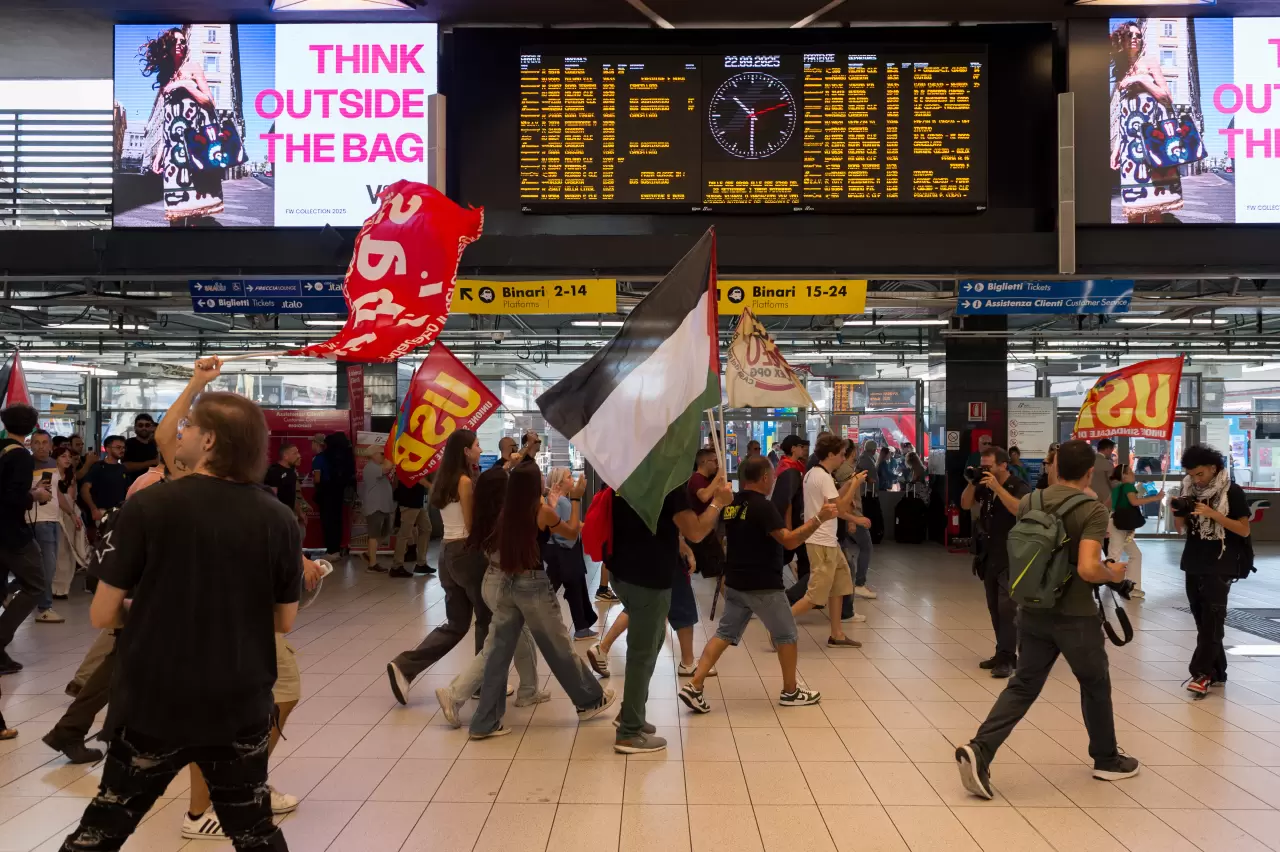 Milano'da da de yağışlı havaya rağmen binlerce kişinin katıldığı gösteride, bir grup protestocunun Milano Merkez Garı'na girme girişimine güvenlik güçleri engel olmaya çalıştı.