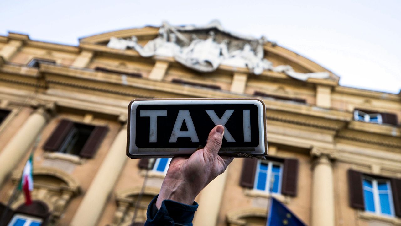 Grev kapsamında bir grup taksici, Roma'da başbakanlık yakınlarındaki San Silvestro Meydanı'nda toplandı.