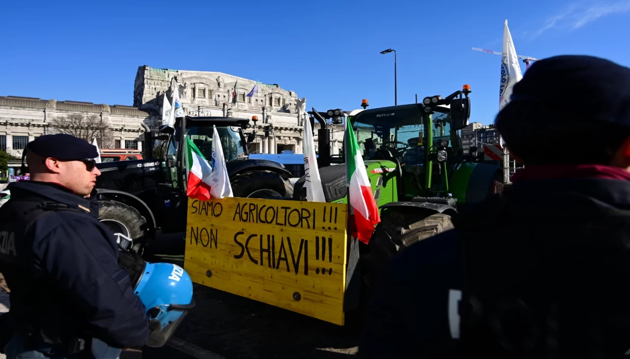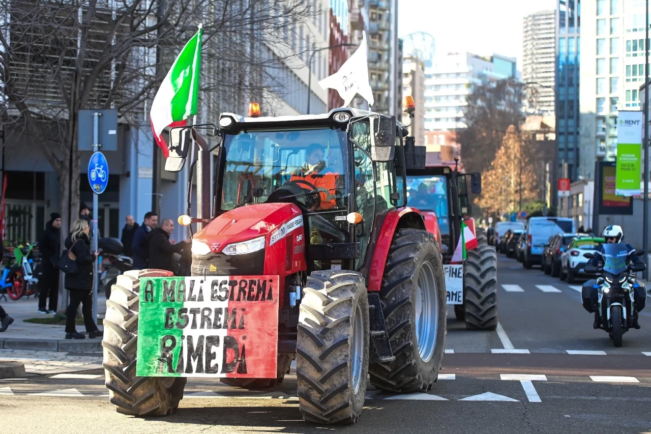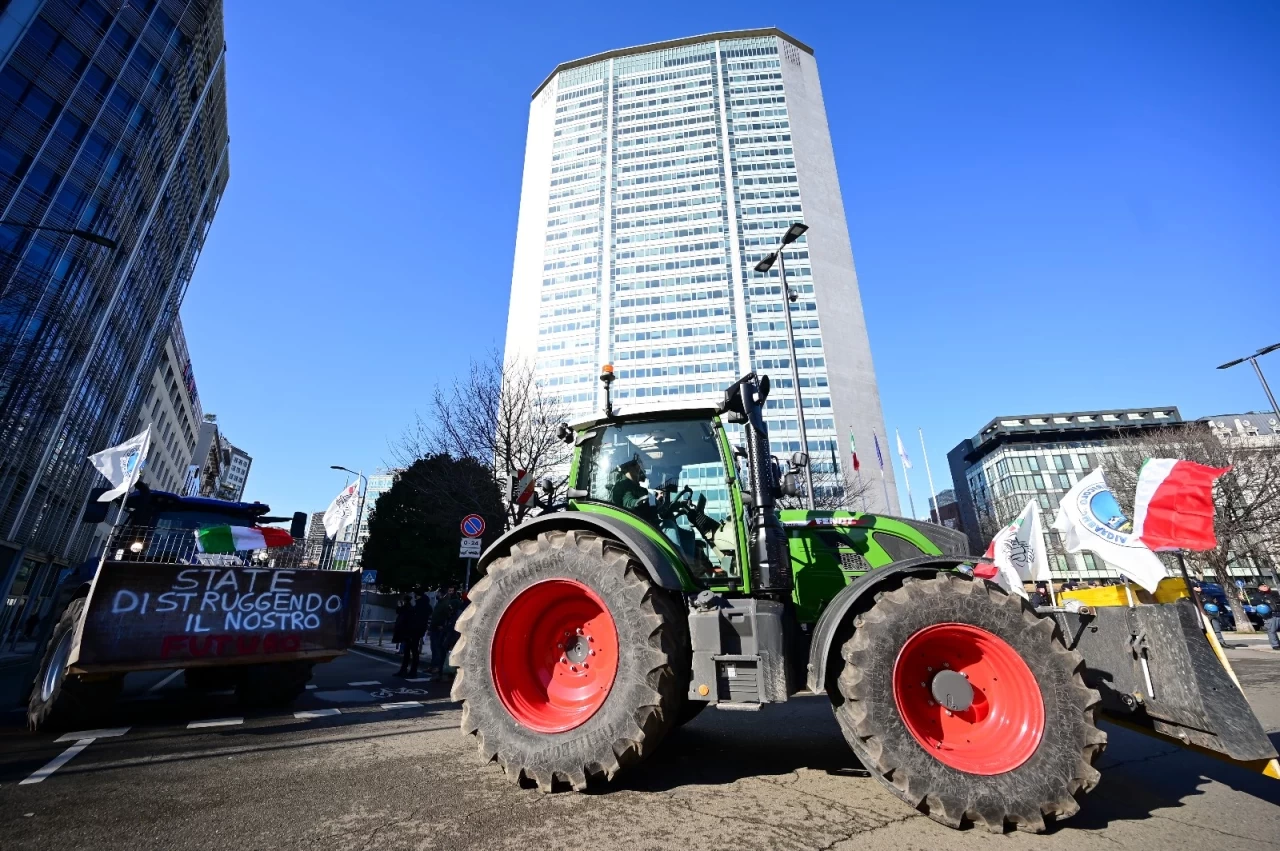 İtalyan çiftçiler, tarım politikalarını protesto etmek ve sektörün içinde bulunduğu kriz durumuyla ilgili hükümete seslerini duyurmak amacıyla traktörleriyle Milan'daki Lombardiya Bölgesi merkezinin önünde toplandılar.