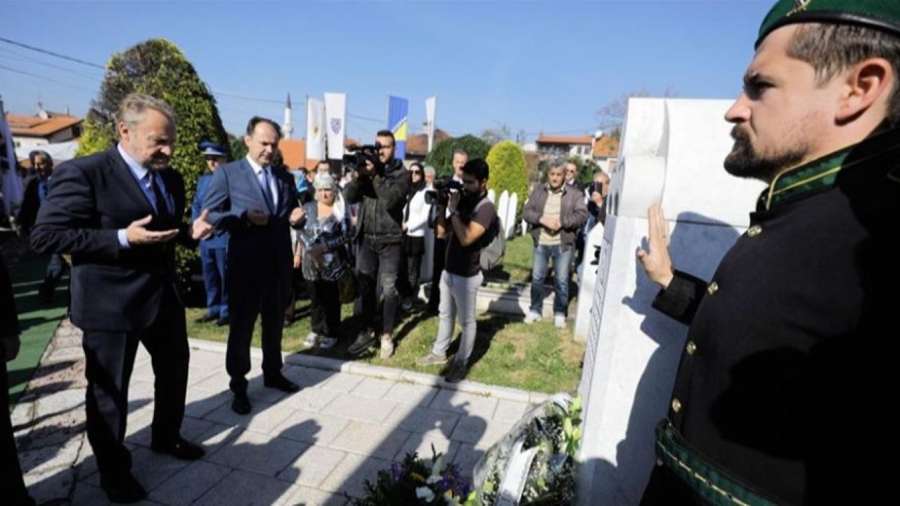 Bosna Hersek'e bağımsızlık yolunda önderlik eden ve felsefi kişiliği dolayısıyla Türkiye'de "Bilge Kral" olarak anılan Aliya'nın kabri başındaki törene katılanlar dua edip, mezara çiçek bıraktı.