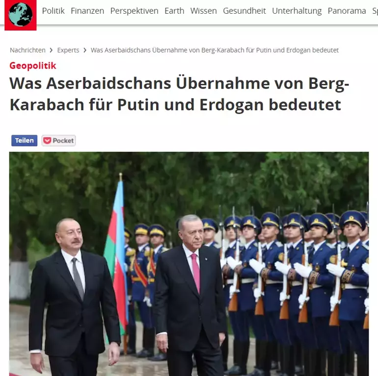 Almanya’nın önde gelen haftalık Haber dergilerinden Focus 'Azerbaycan'ın Dağlık Karabağ'ı ele geçirmesi Putin ve Erdoğan için ne anlama geliyor' başlığı ile okurlarının karşısına çıktı.
