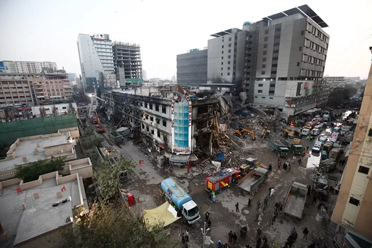 Karaçi'deki alışveriş merkezinde 17 Ocak'ta yangın çıkmıştı.