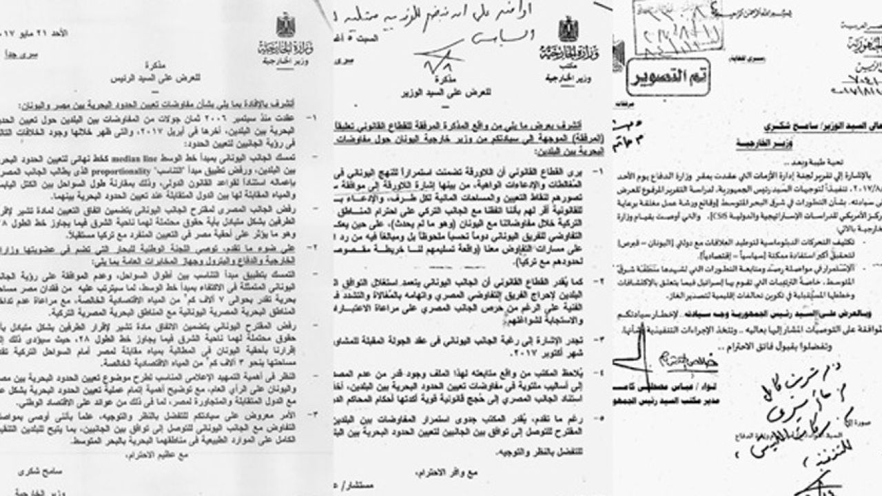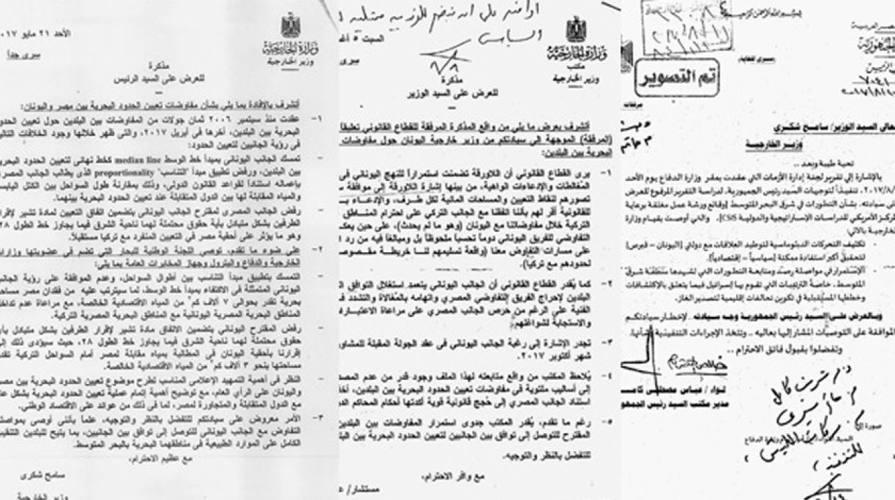 Katar merkezli Al Jazeera televizyonu tarafından yayınlanan belgelere göre, Mısır Dışişleri Bakanı Samih Şükri, 2017 yılında Akdeniz sınırının belirlenmesi konusunda Yunanistan ile yapılan müzakereler sırasındaki "anlaşmazlıklara" dair Cumhurbaşkanı Abdulfettah es-Sisi'ye bilgi notu yazdı.