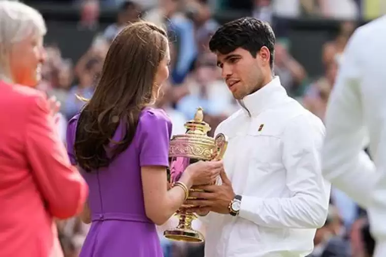 Wimbledon Açık'ın yöneticisi konumunda bulunan Prenses Kate, dün Novak Djokovic ve Carlos Alcaraz arasında oynanan erkekler finaline gitti.