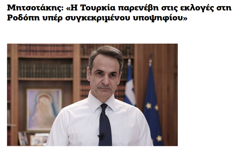 Yunan gazetesine konuşan Miçotakis, 21 Mayıs'ta Türk azınlıktan dört adayın siyasi partilerden milletvekili seçilmeyi başardığı Rodop'taki (Gümülcine) seçimleri karalamaya kalktı.
