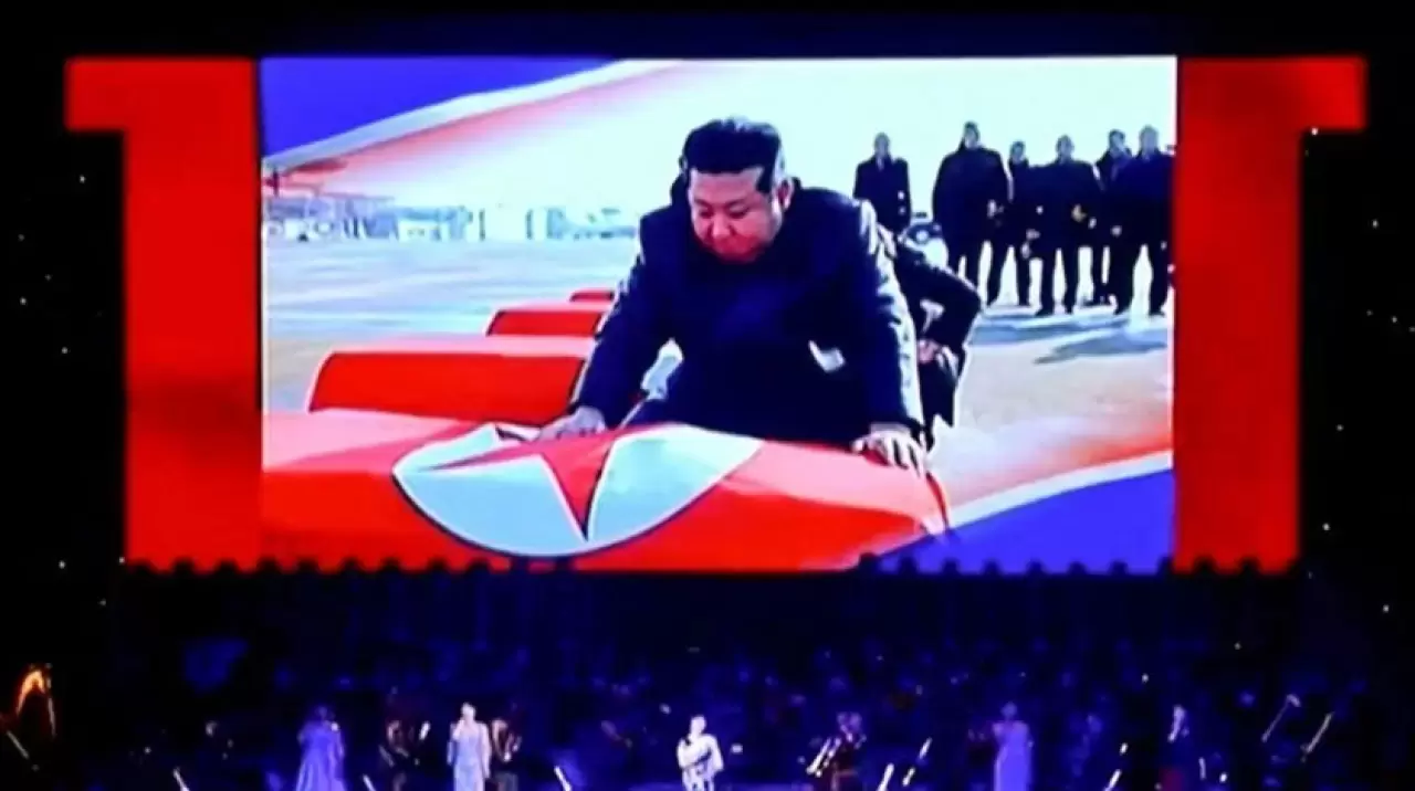 Gösteri sırasında ekranlarda, ülke bayrağına sarılı yaklaşık altı tabutun önünde duran Kim’in fotoğrafları da yer aldı.