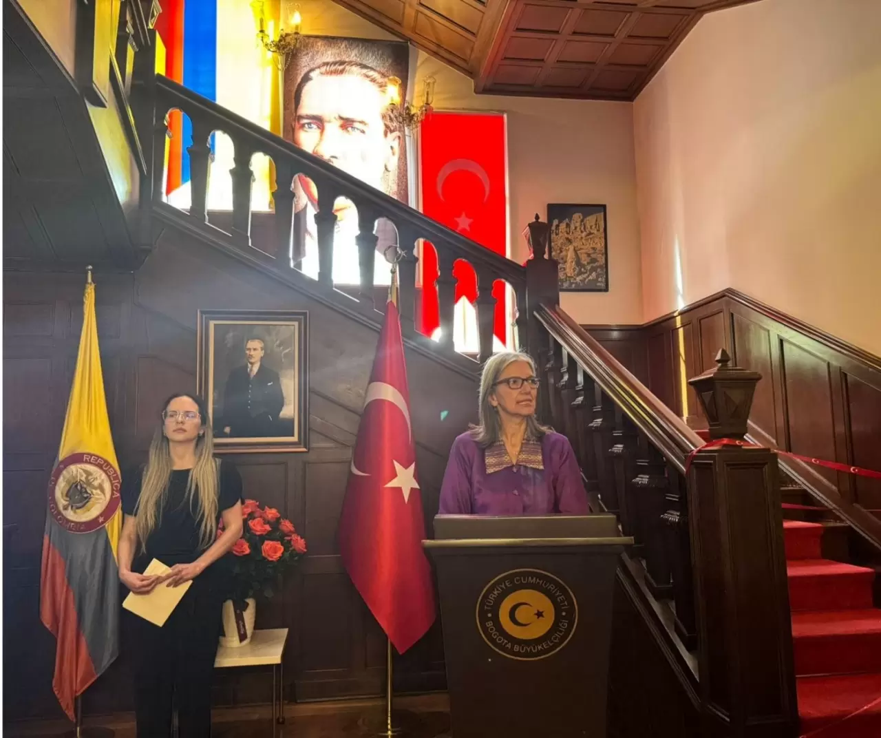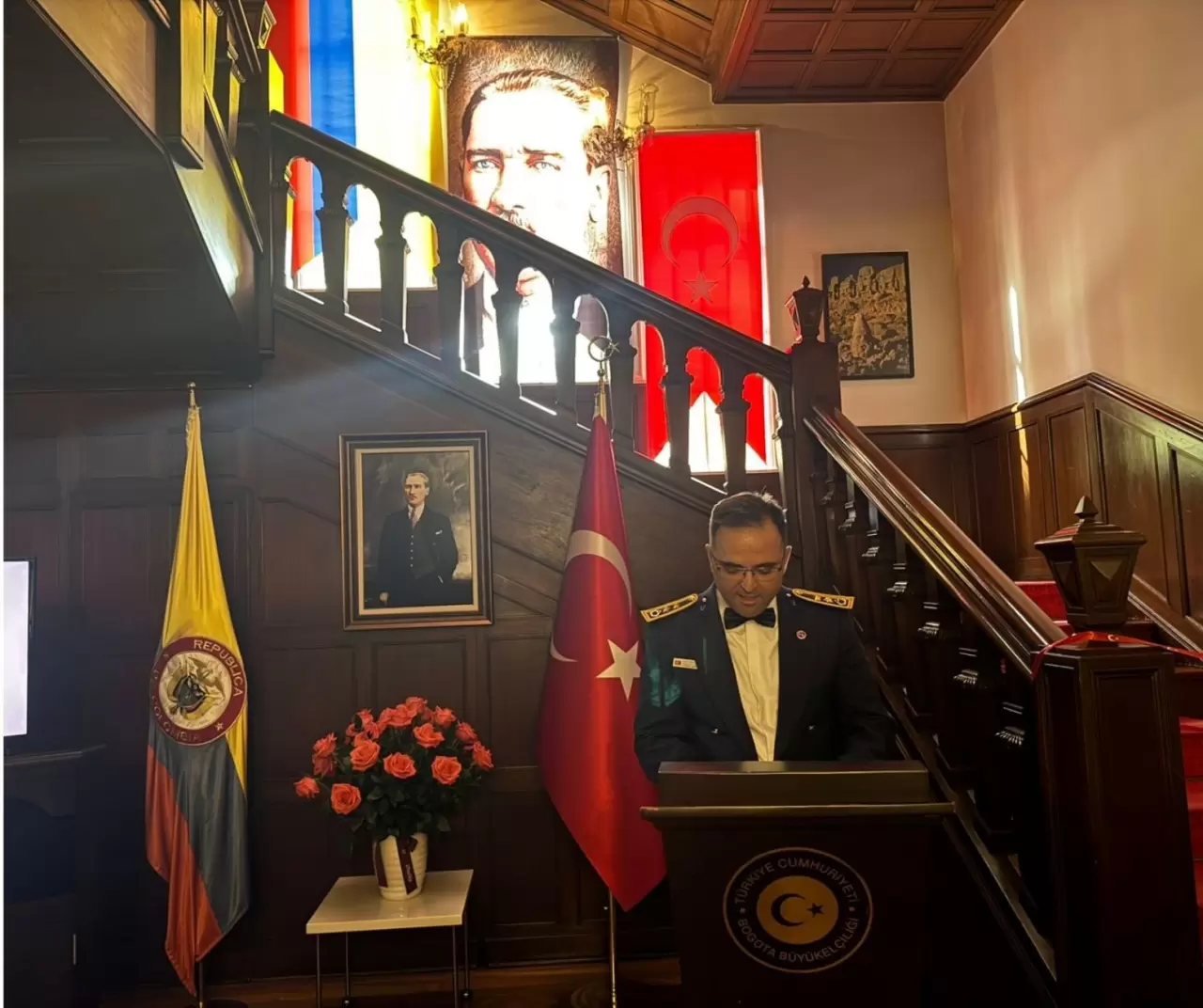 Türkiye'nin Bogota Büyükelçisi Beste Pehlivan Sun ile Silahlı Kuvvetler Savunma Ataşesi Yarbay Serdar Surada'nın ev sahipliğinde büyükelçilik rezidansında resepsiyona, Kolombiya'da yer alan farklı ülkelerin üst düzey askeri temsilcilikleri, çeşitli ülkelerin büyükelçileri, ülkede yaşayan Türk vatandaşları ve büyükelçilik çalışanları katıldı.