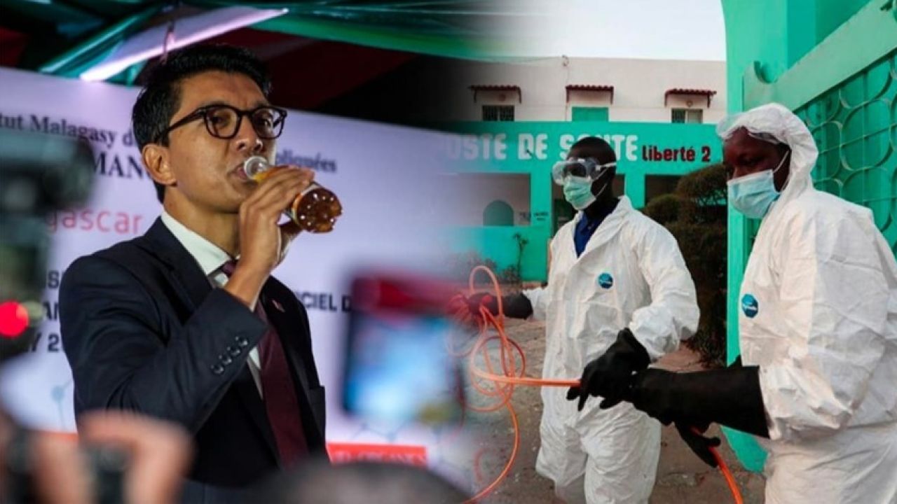 Rajoelina, Kovid-19 karşı geliştirdiklerini öne sürdüğü bitkisel ilacı 20 Nisan'da kameralar önünde içmişti.