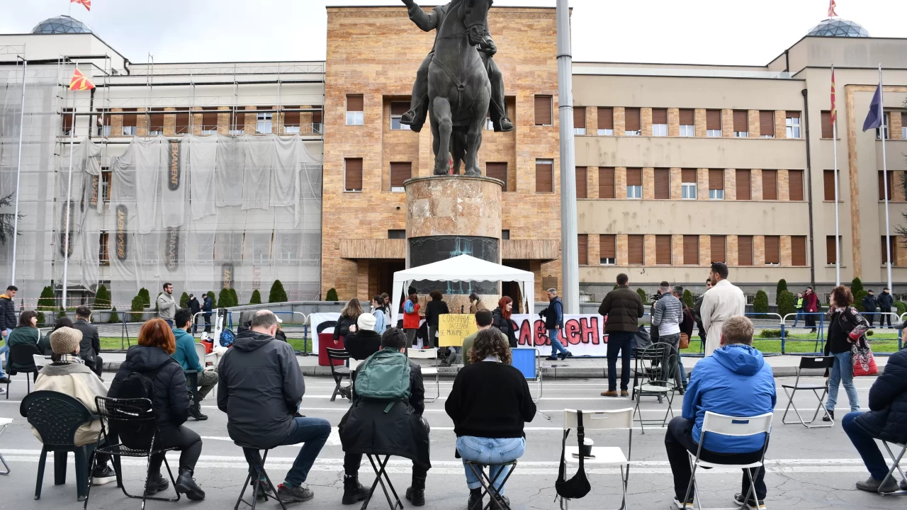 "Sıradaki kim?" adlı oluşumun çağrısıyla Üsküp'teki Meclis binası önünde bir araya gelen göstericiler, 59 kişinin hayatını kaybettiği, 170'ten fazla kişinin yaralandığı gece kulübünde çıkan yangının sorumlularının cezalandırılmasını talep etti.