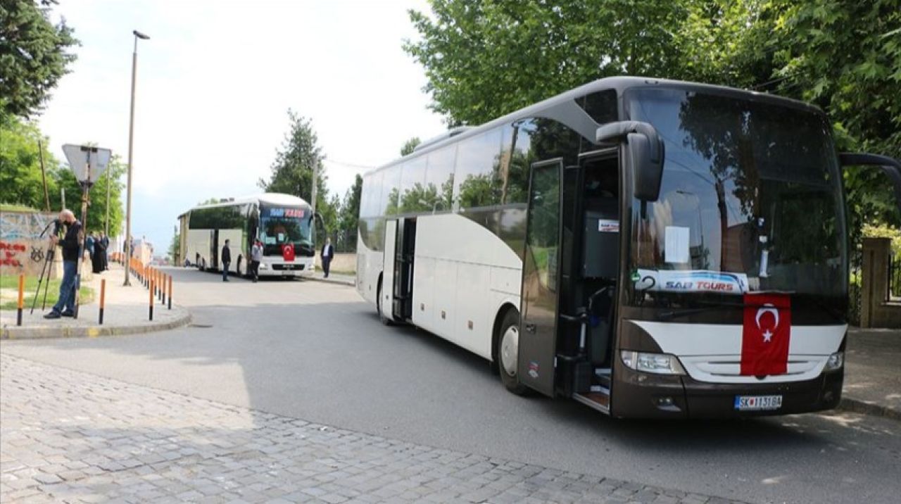 Başkent Üsküp'ten 2 otobüsle yola çıkan Türk vatandaşları, Büyükelçilik yetkilileri tarafından uğurlandı.