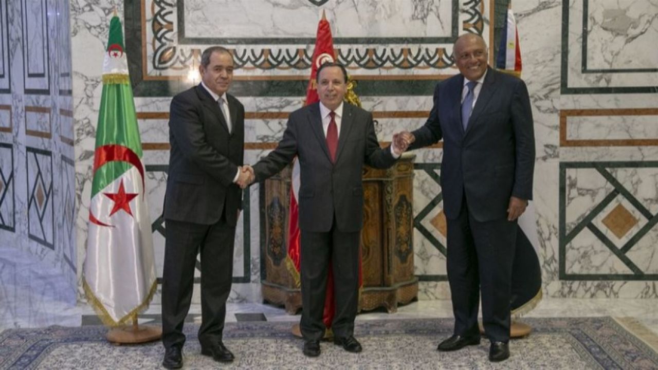 Tunus Dışişleri Bakanı Hamis el-Cihinavi ile Mısırlı ve Cezayirli mevkidaşları Samih Şukri ile Sabri Bukadum başkent Tunus'ta gerçekleştirdikleri görüşmenin akabinde ortak basın toplantısı düzenledi.