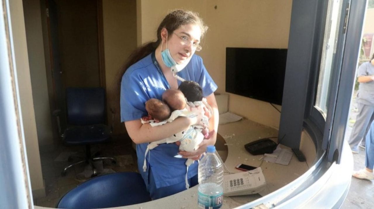 Lübnan'ın başkenti Beyrut'ta 137 insanın yaşamını yitirdiği ve 5 binden fazla insanın da yaralandığı korkunç patlamanın etkileri sürüyor. Patlamanın meydana geldiği yere 2 kilometre mesafede bulunan Al Roum Hastanesi’nde görevli bir hemşire, 3 yeni doğan bebeği kucağına alarak kurtardı. Hemşirenin bebeklerle olan o anı foto muhabir Bilal Jawich tarafından görüntülendi. CNN Arabic’e konuşan Jawich, “Hemşirenin bebekleri kucakladığını gördüğümde şaşırdım. Sadece bir metre mesafede ölü ve yaralılar varken, hemşirenin kucağındaki bebeklerle çok sakin olduğunu gördüm” dedi.