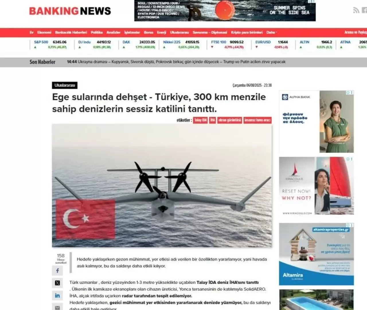 Deniz yüzeyinden 1 ila 3 metre yükseklikte uçarak hedefine yaklaşan kamikaze İHA TALAY hakkında Yunan basınında övgüyle bahsedildi.