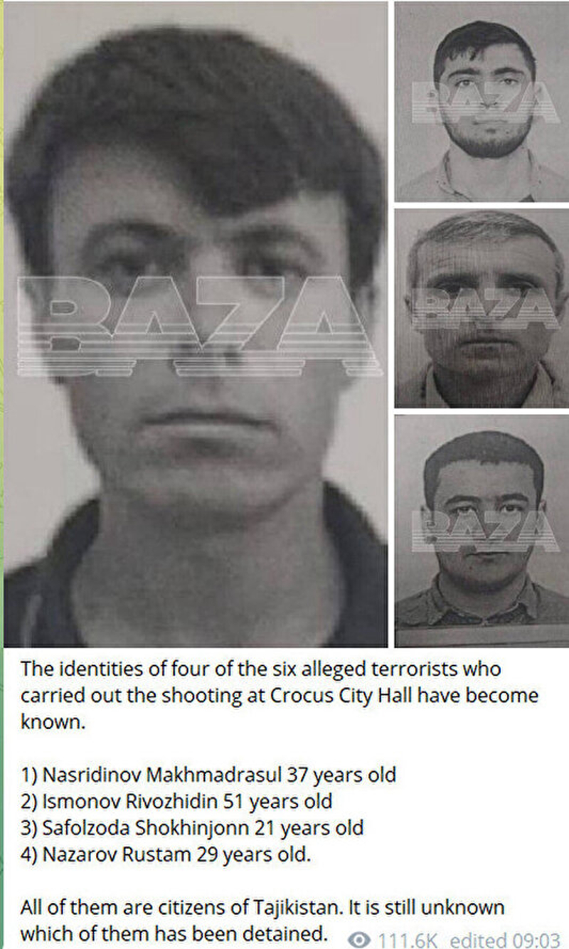 Rusya makamlarından yapılan açıklamaya göre saldırıyı yapan isimlerin tamamının Tacikistanlı olduğu bildirildi.
